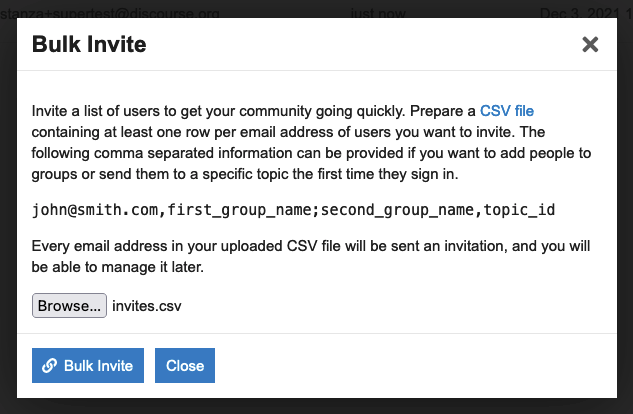 若逐一邀请大量用户加入您的Discourse实例,可能会耗费大量时间。幸而,Discourse提供了批量邀请功能,使您能够一次性邀请多名用户。本指南将引领您完成批量邀请的整个流程。