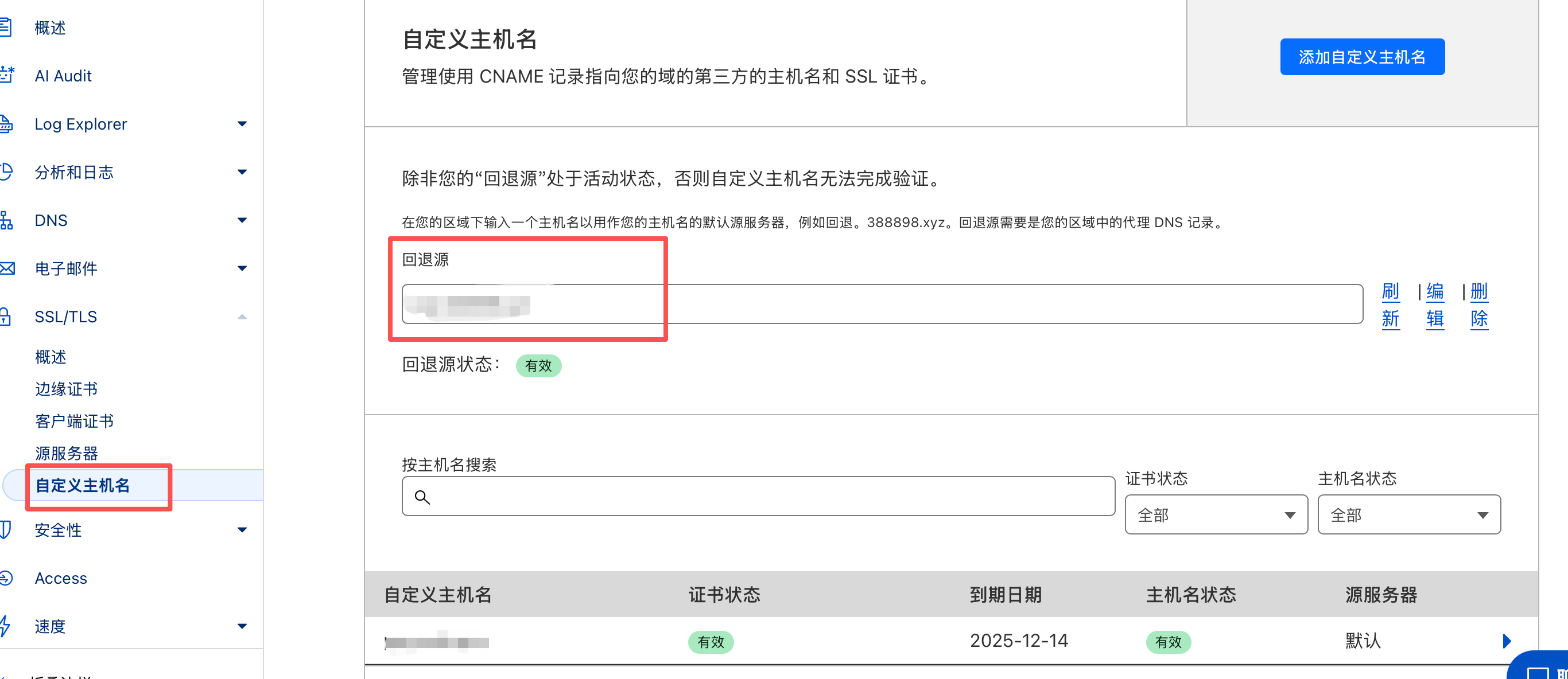 在回源配置这里,选择cloudflare的优选域名,这里使用论坛主流的cf 优选域名:cloudflare.182682.xyz