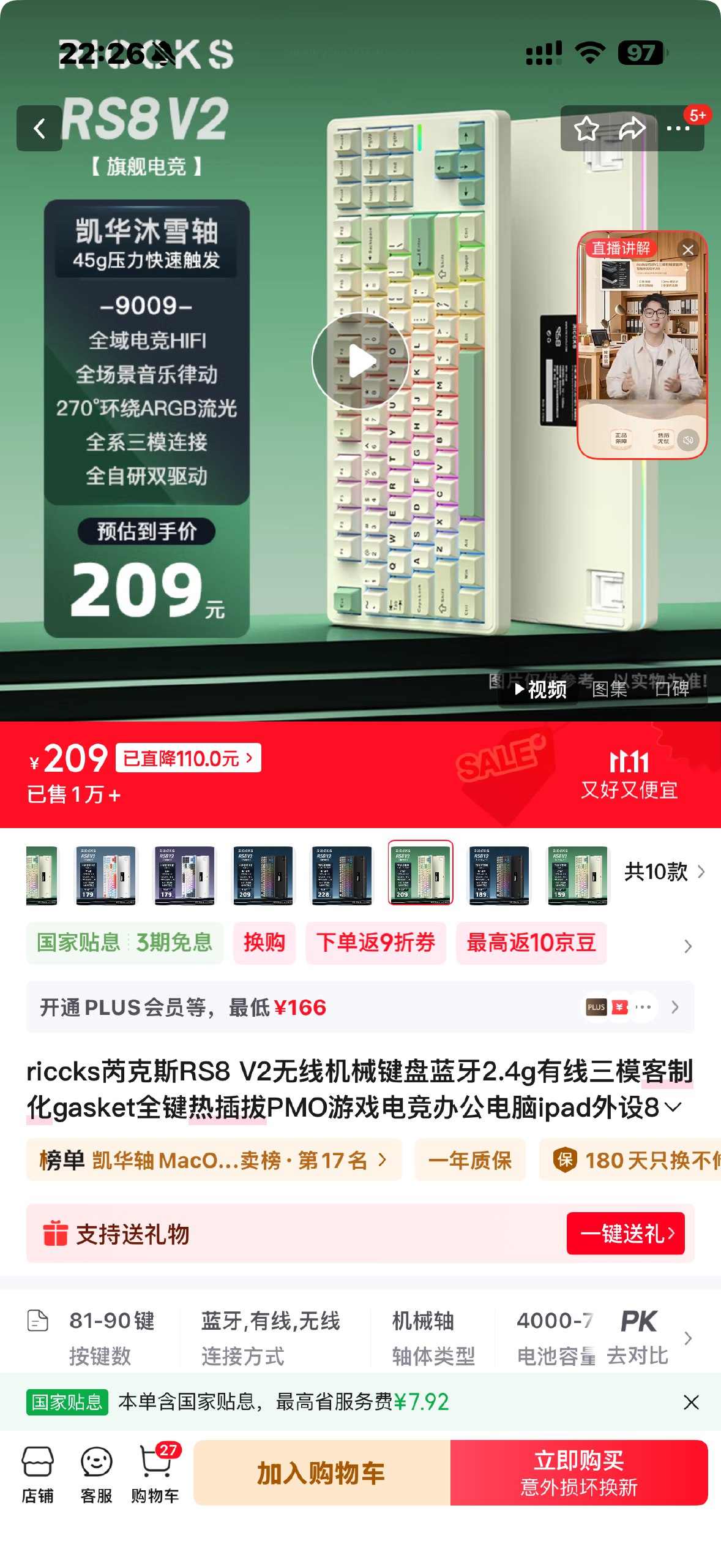 双十一之前没多久,想买一个机械键盘,于是花159买了 8000毫安的 rs8 v2