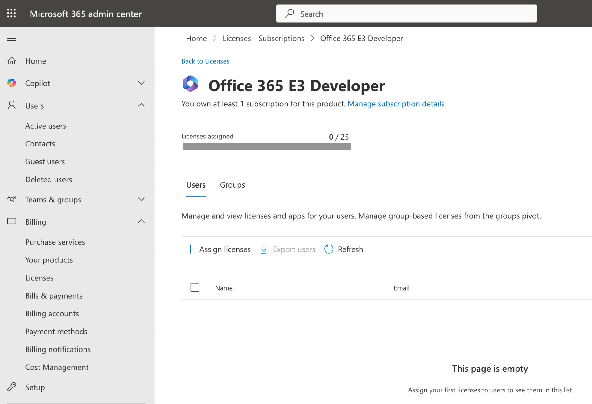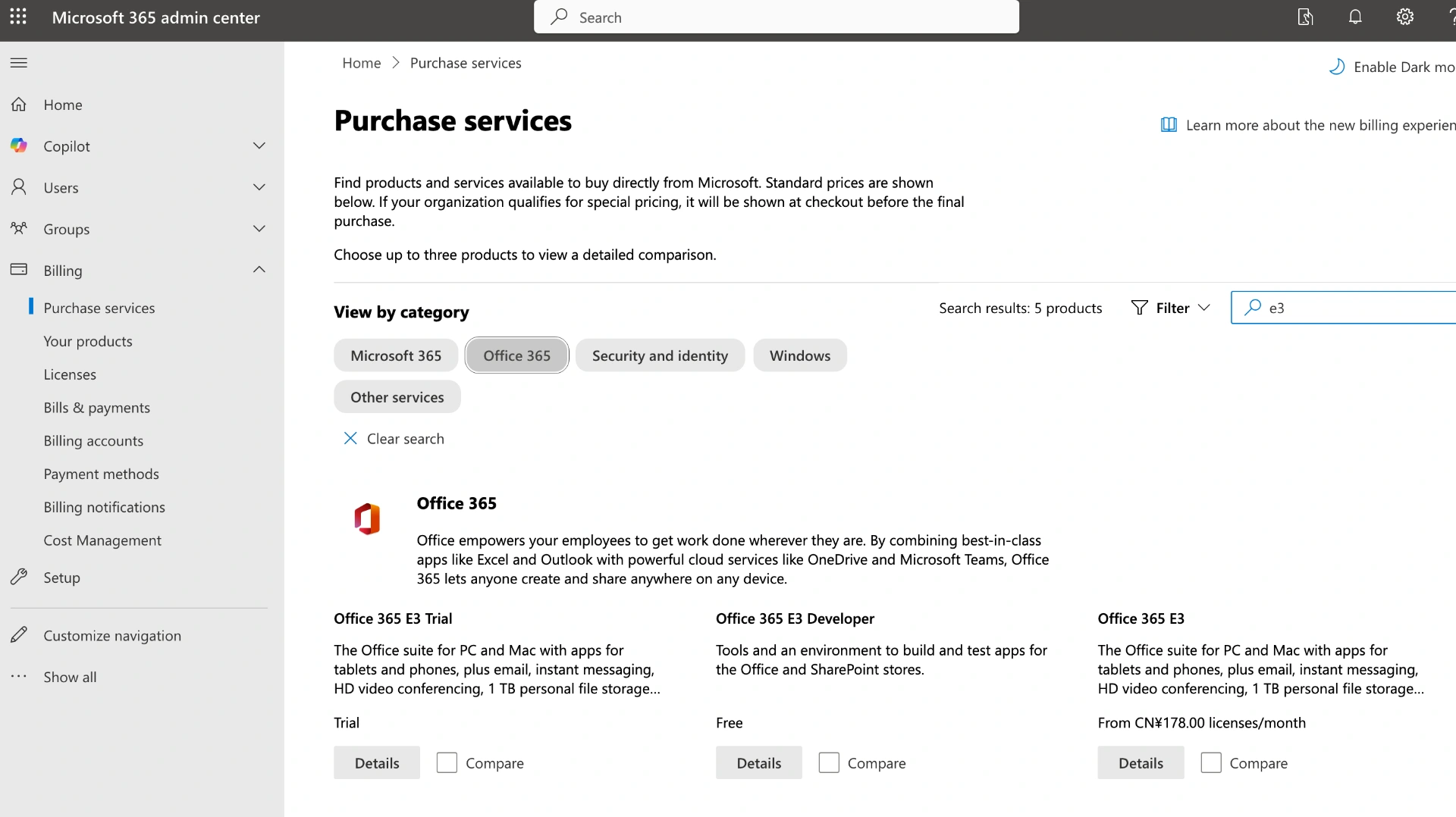 filter 过滤 e3 找到 Office 365 E3 Dev… 点Details