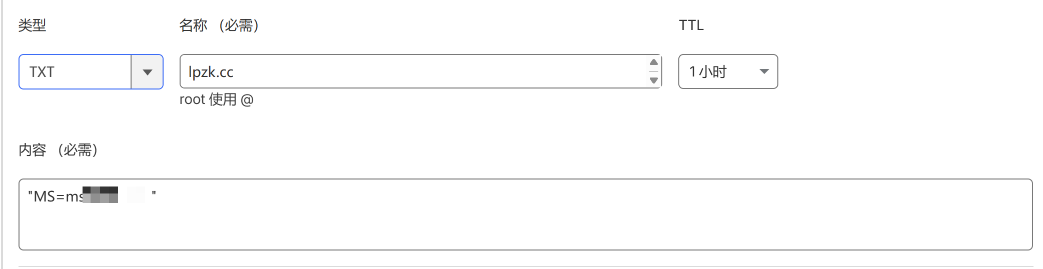 运行后得到MS=ms1234567,其实就是微软教程里给的那串数字,我之前一直以为报错是因为我这个域名被之前的拥有者给注册过了