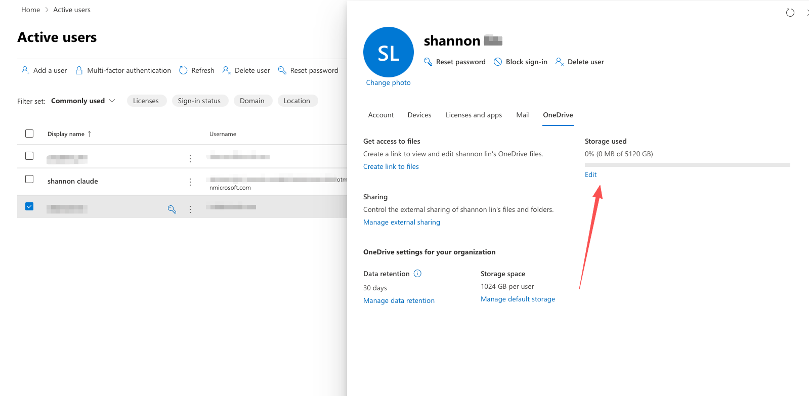 出现这个页面, 再回去Admin, onedrive 就正常显示 可以调空间了