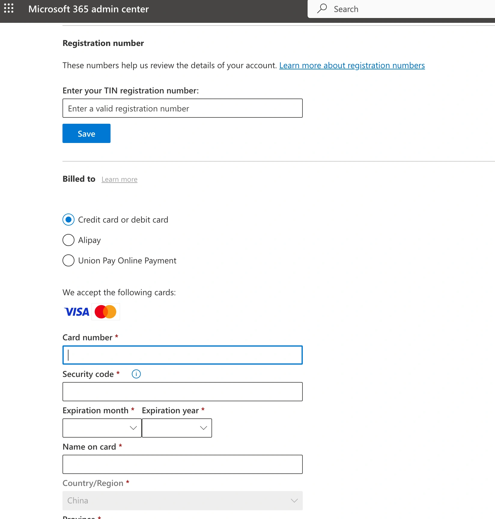 填完一些资料来到这里, TIN随便填几个数字, 支付选 Alipay
