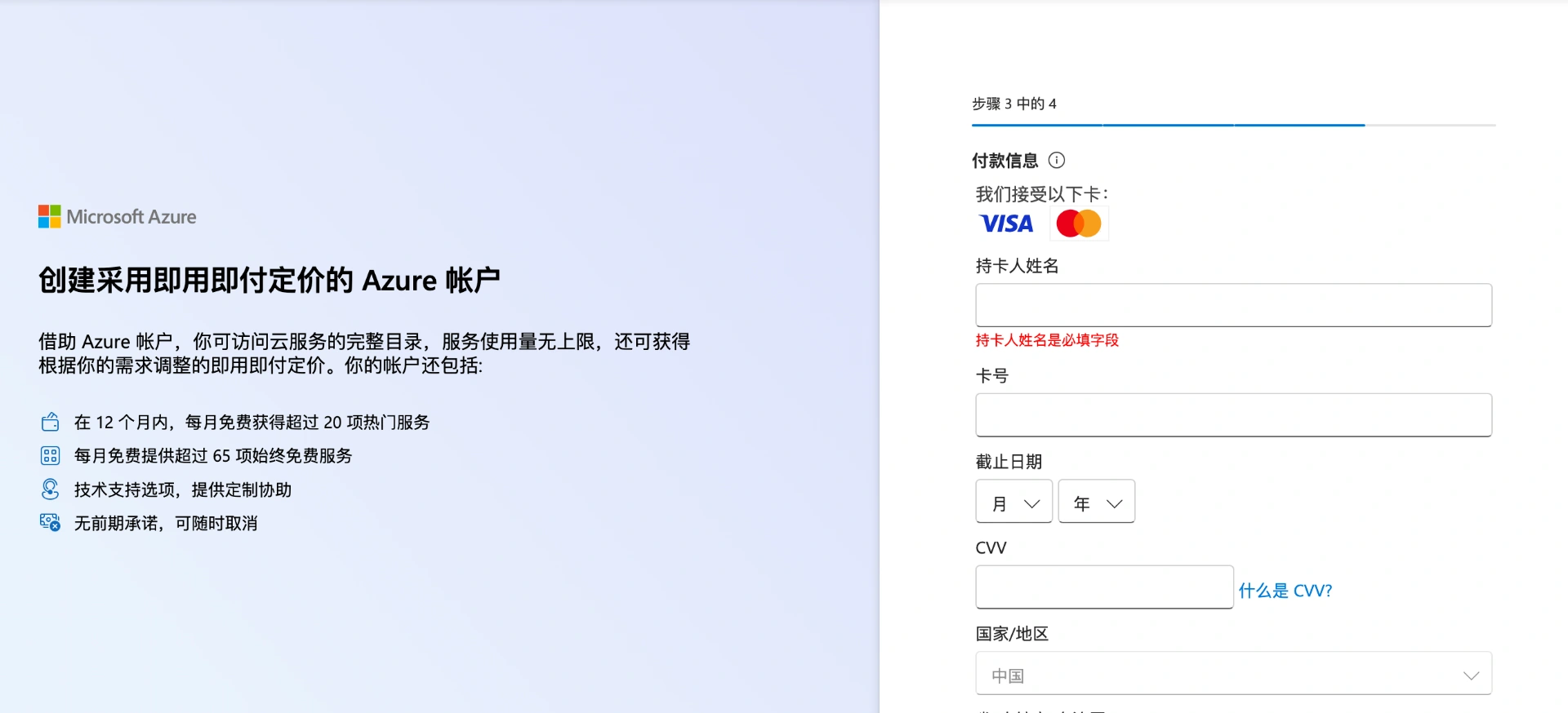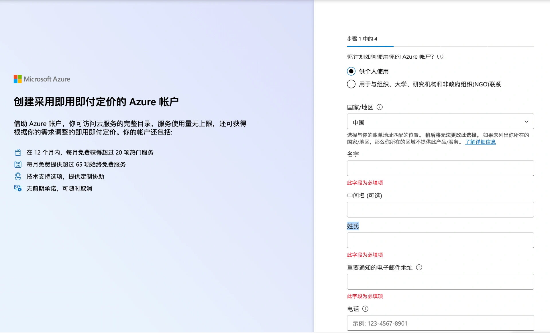 首先打开 azure.com 创建账号 会跳转到这个界面, 点击 创建一个