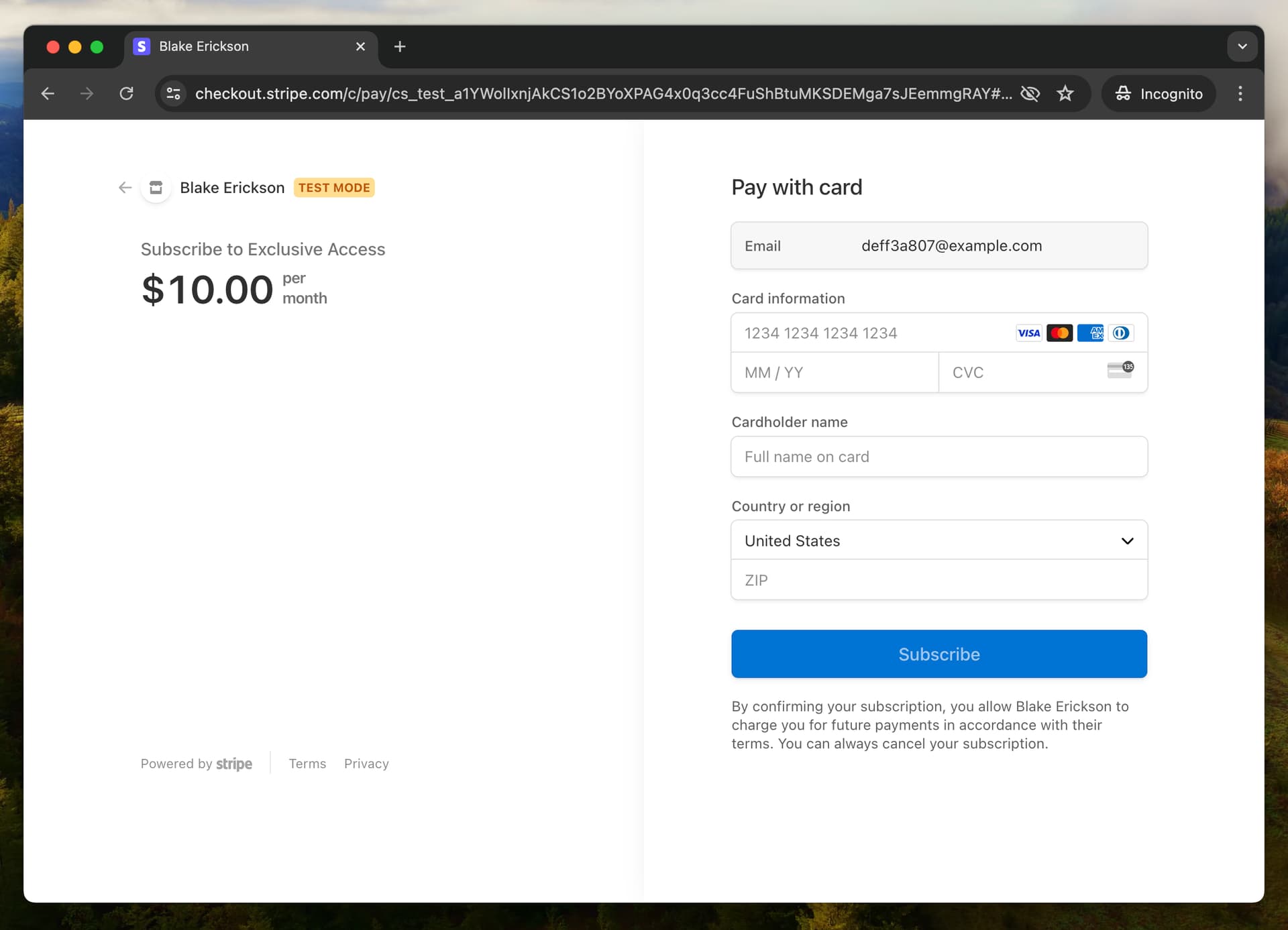 您也可以选择不使用订阅插件的产品和结账页面,而是使用 Stripe 结账 和 Stripe 定价表。