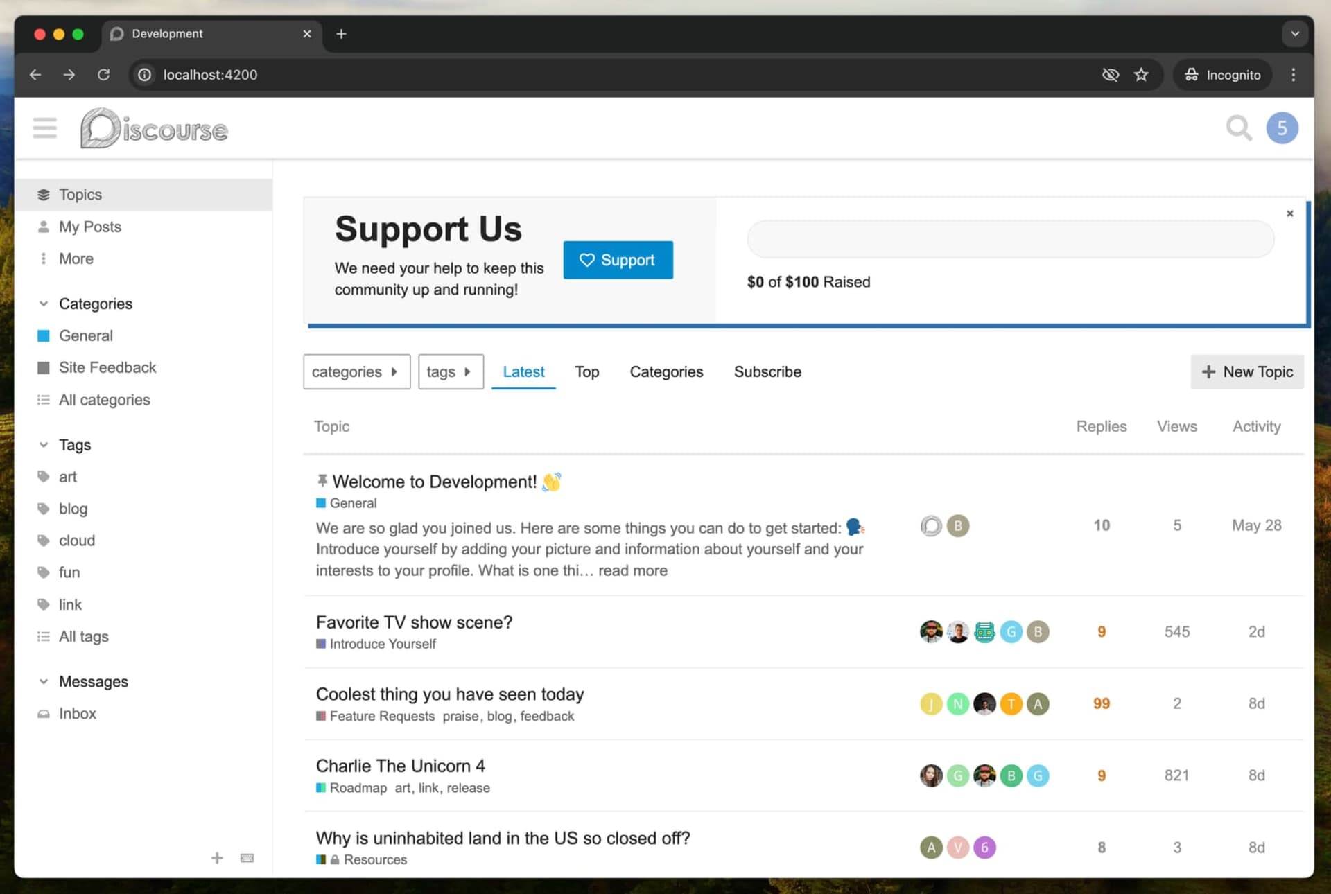 | discourse subscriptions campaign enabled | 启用一个推广社区财务支持的活动横幅。 |