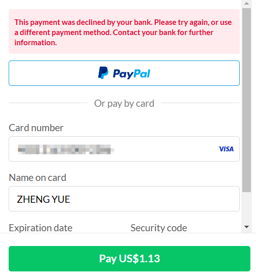 找个别的服务,支付试一下,比如过花3刀买个家宽代理试用,看看能不能付