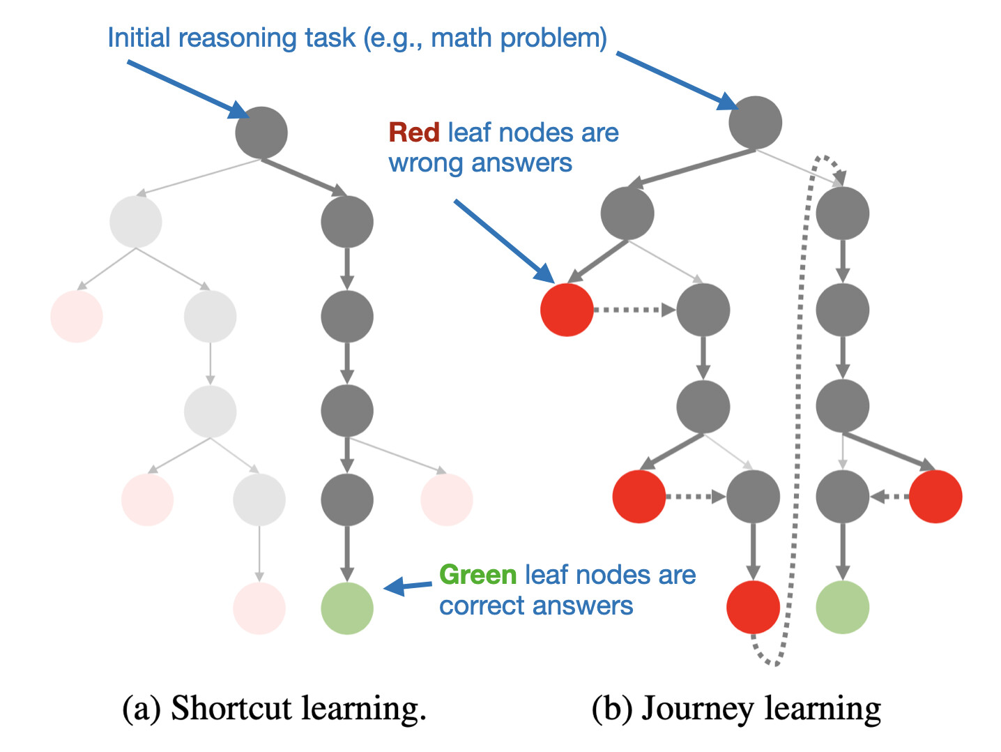 使用捷径和旅程学习训练的 LLM。来自《O1 复现报告》的带注释的图表,[2410.18982] O1 Replication Journey: A Strategic Progress Report -- Part 1