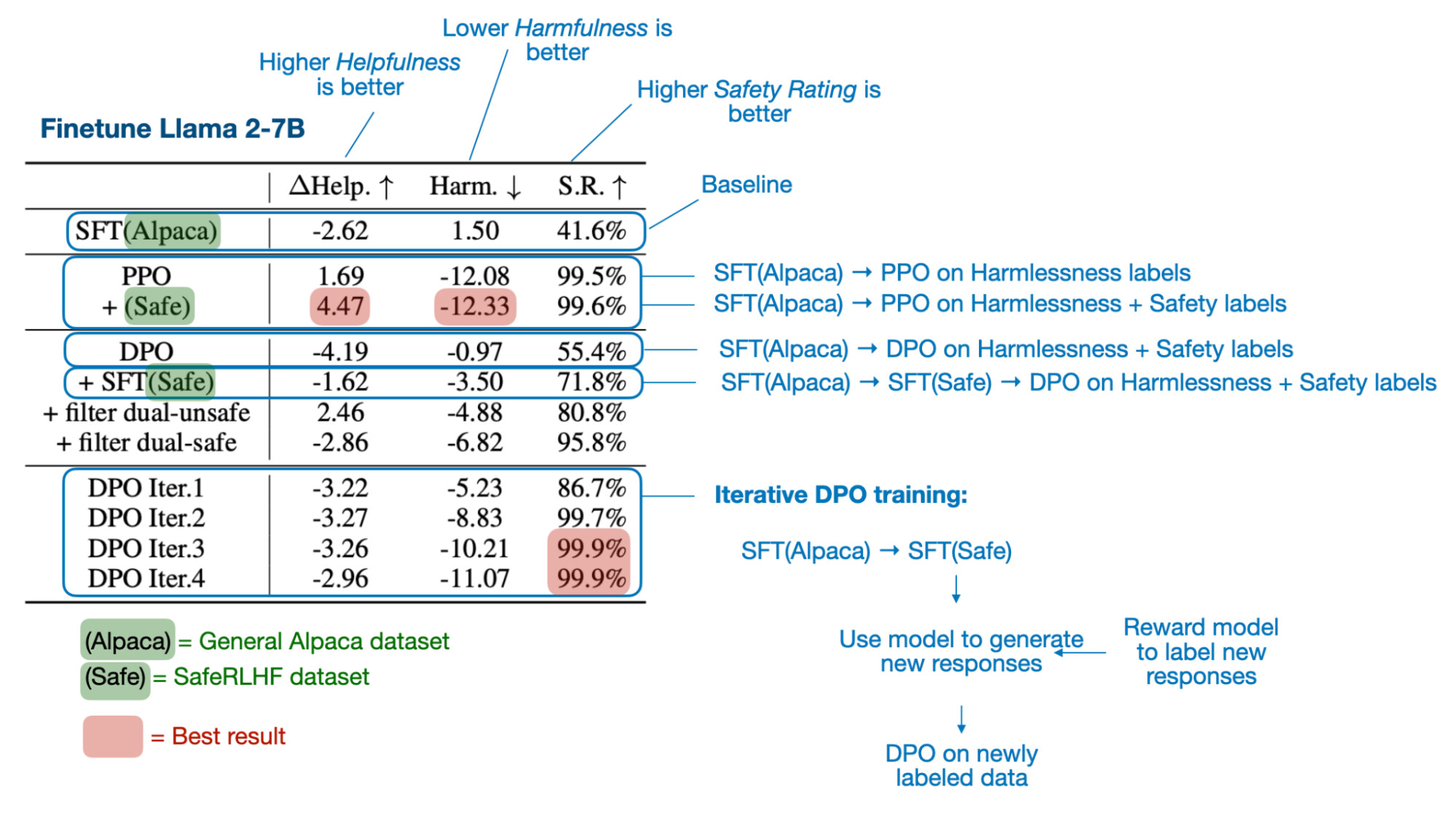 来自《DPO 是否优于 PPO 用于 LLM 对齐?一项全面的研究》([2404.10719] Is DPO Superior to PPO for LLM Alignment? A Comprehensive Study) 论文的带注释的表格。