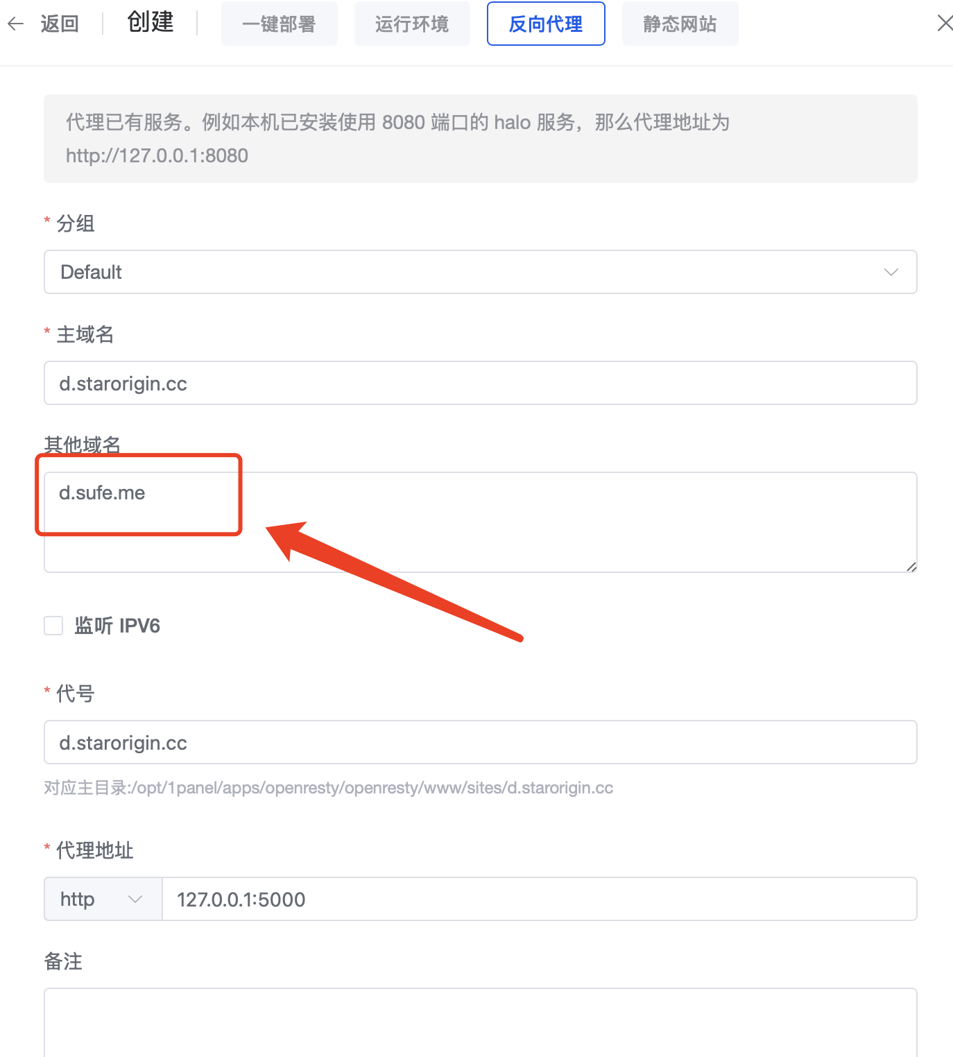 在反向代理文件中添加 目标域名