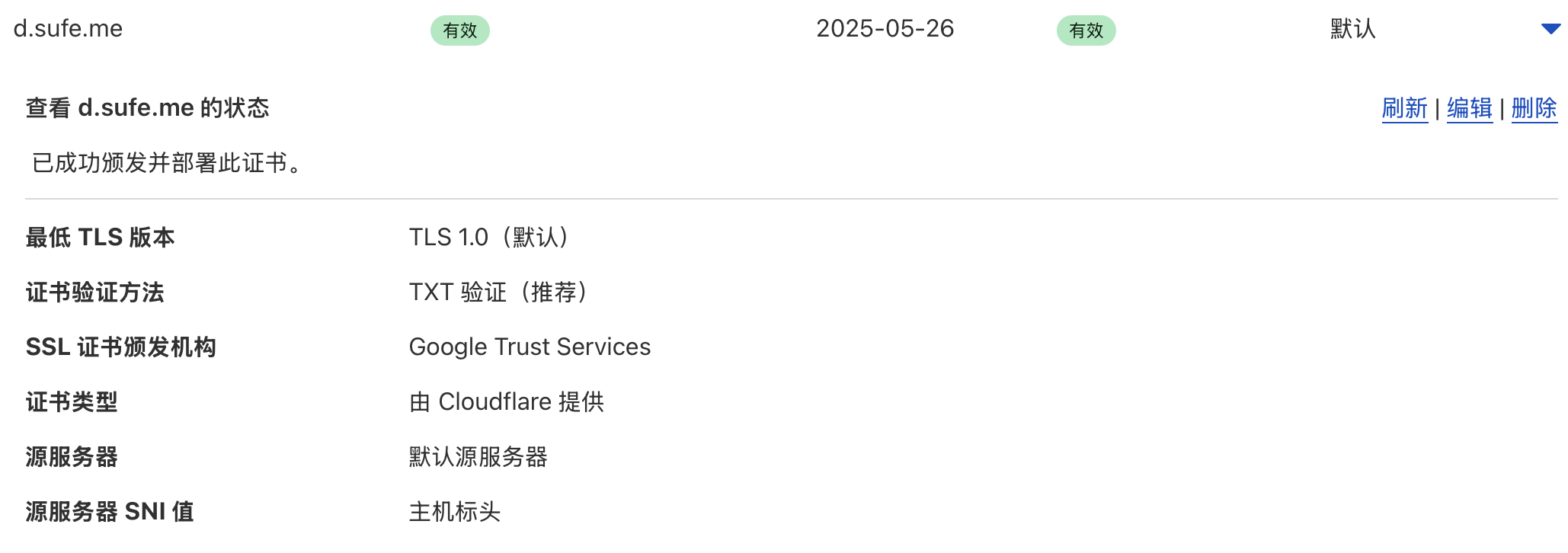 目标(target):d.sufe.me.f3329afe6c3e80dc.dcv.cloudflare.com (这里是域名全称)